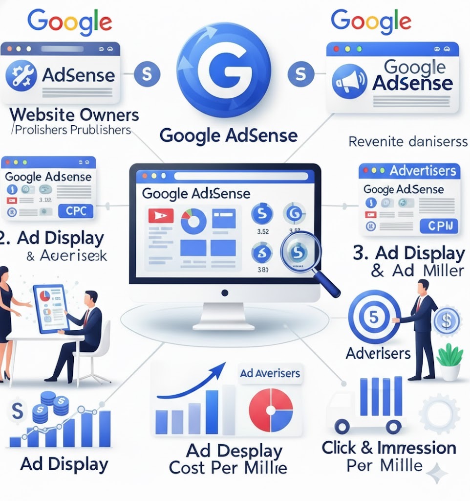구글 애드센스는 광고를 노출하고 수익을 얻을 수 있는 플랫폼으로, 웹사이트나 블로그 운영자가 자신의 사이트에 광고를 삽입하면 방문자의 행동(클릭, 노출, 전환 등)에 따라 광고 수익이 발생합니다.